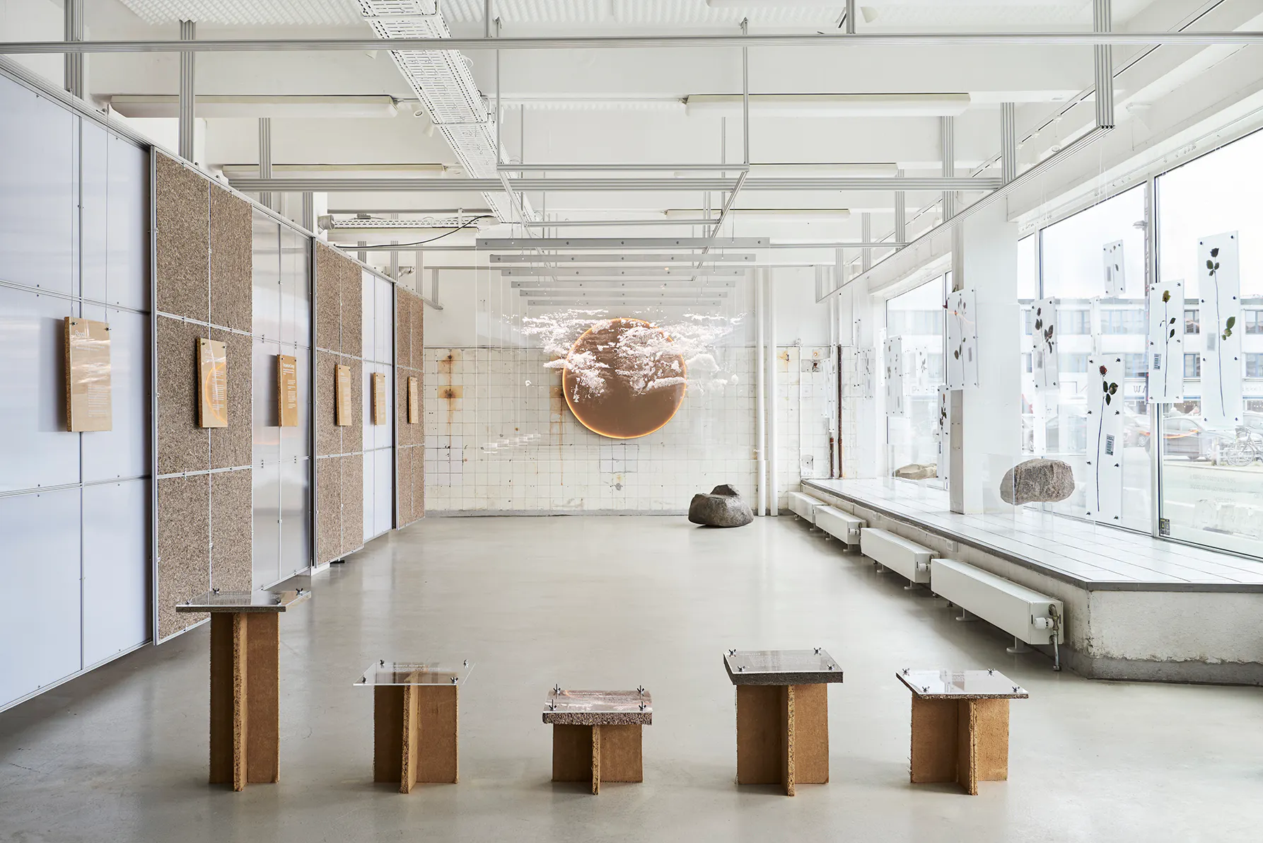 This exhibition design for Space 10 in Copenhagen presents a series of new iterations of building materials that significantly decrease carbon emissions during production. Exploring the aesthetic potential of these materials as a backdrop to a call to action, the exhibition design is a material reminder of our capacity to build better without intensifying climate change.