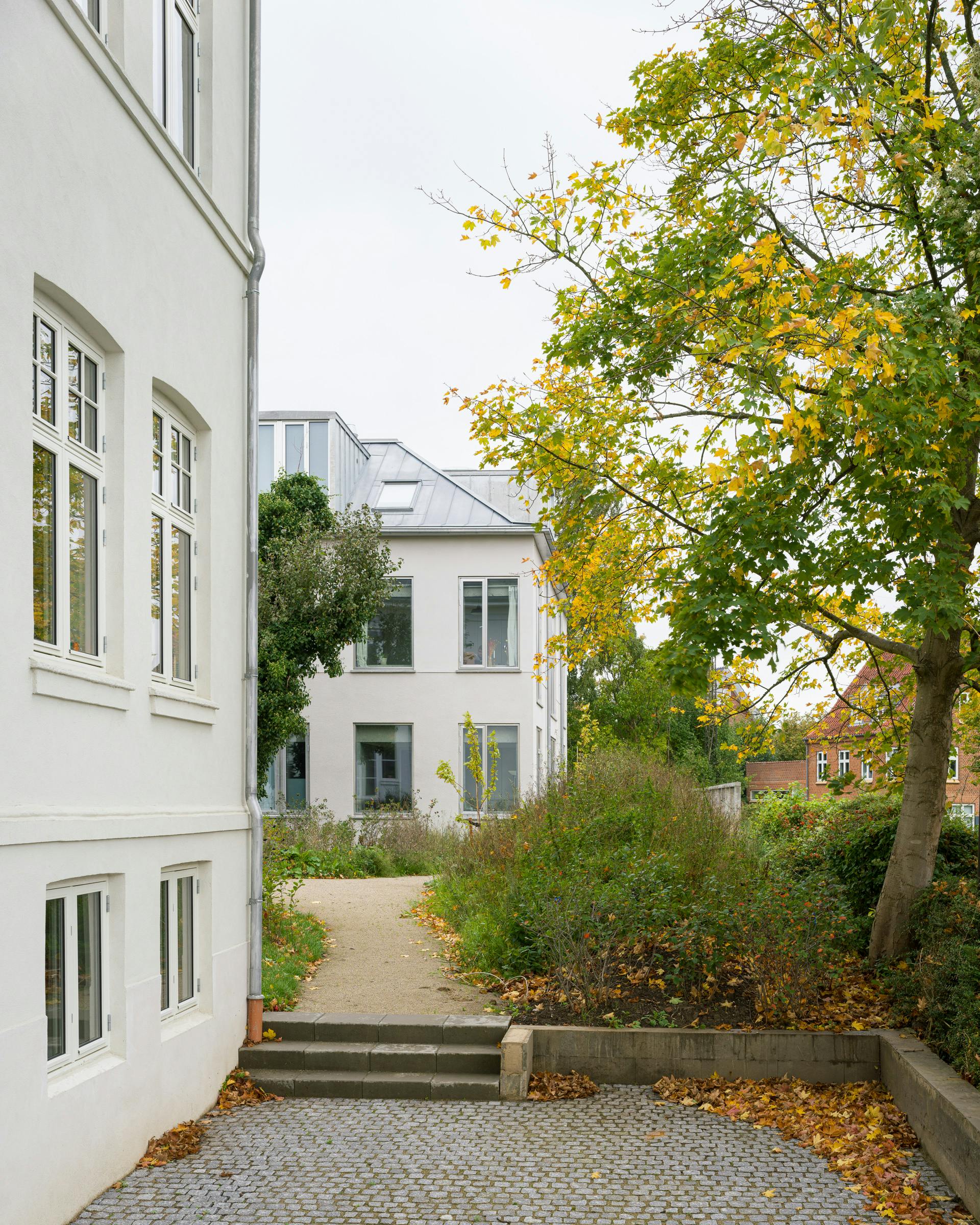 “Villa Landluft” and its newly built neighbor building form a sibling relationship with over a hundred years between them, sharing motives and proportions, similarities and differences to bring new life to a problematic and forgotten corner of Aarhus city.